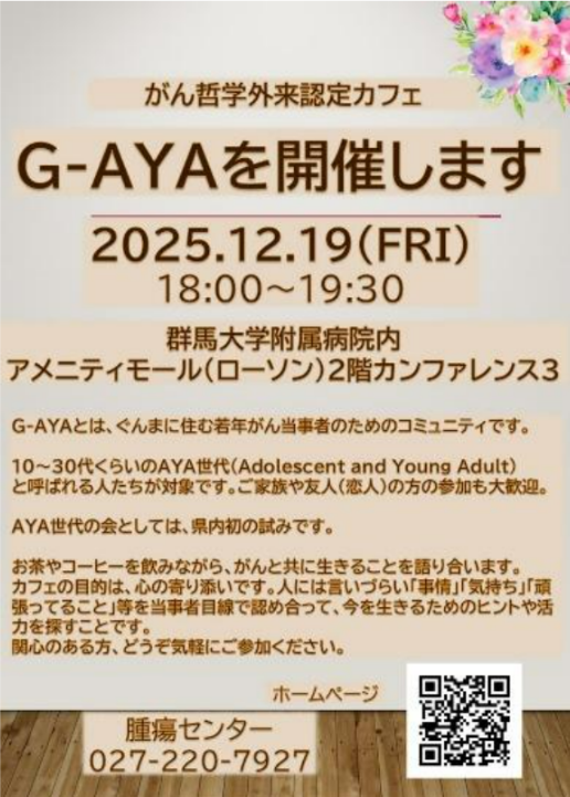 G-AYAとは、ぐんまに住む若年がん患者のためのコミュニティです。